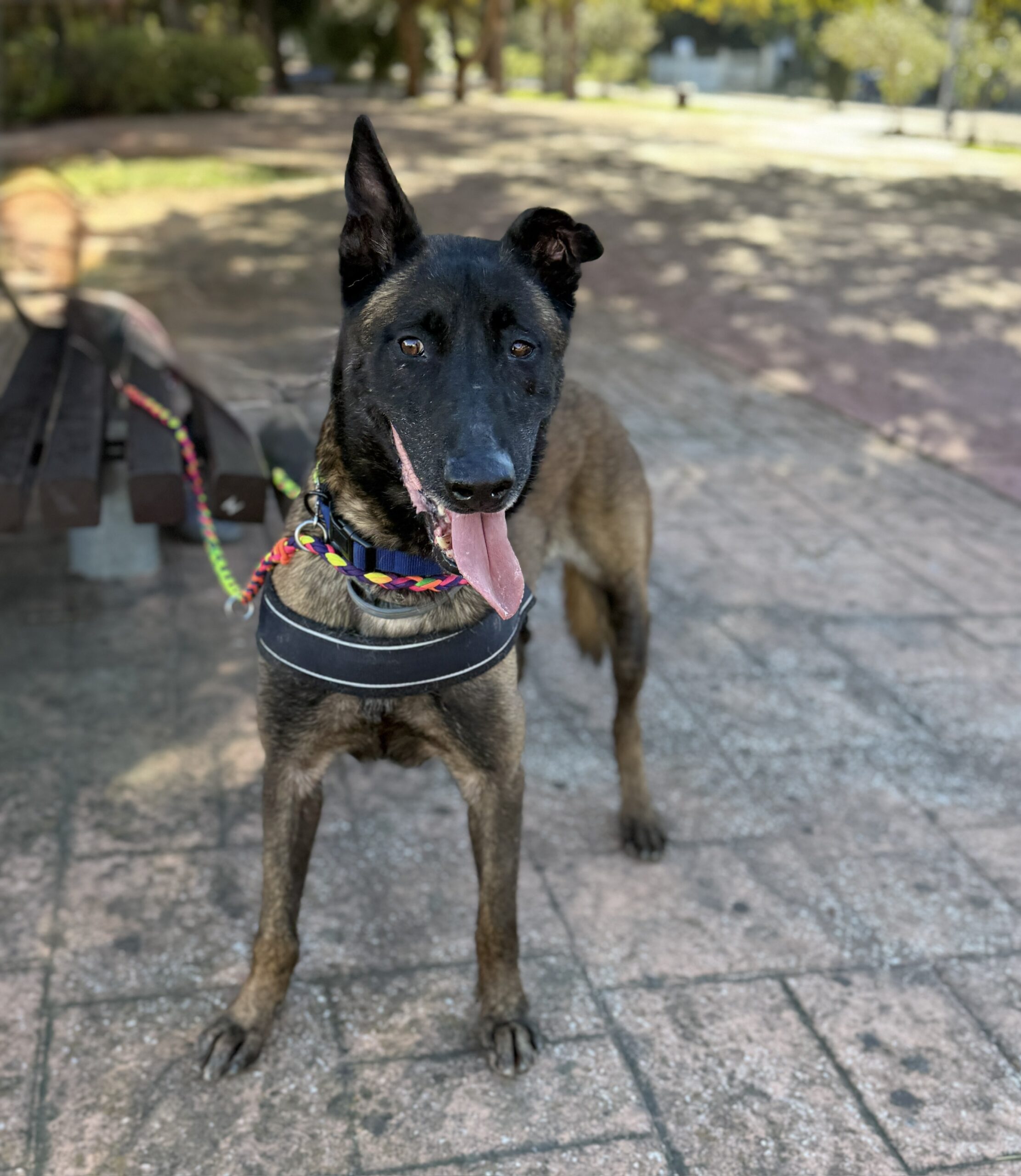 He wasn’t bothered at all by the traffic, people passing by, children on scooters, elderly people with wheelchairs, people playing basketball, or other dogs. He handled everything with ease, simply happy to experience new smells, new sights, and a bit of freedom.