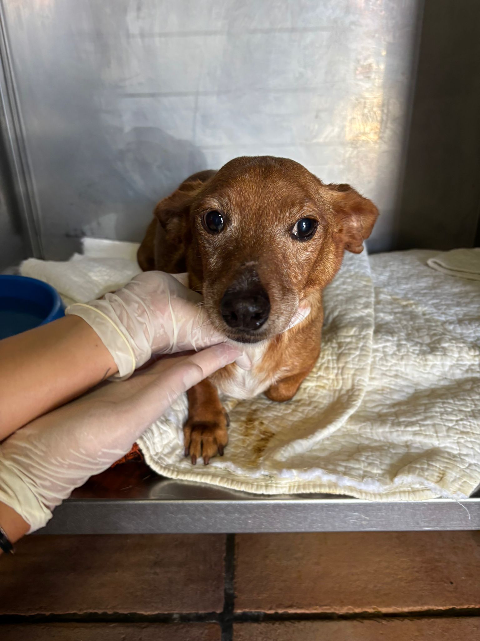 Baby, a lovely new arrival at the pound. She is an approximately 8-year-old Podenco with a very sweet and affectionate nature. Baby is incredibly cuddly and gentle, and she gets along well with all other dogs. Despite her calm and loving personality, she is still full of life and ready to become a cherished member of a family.
