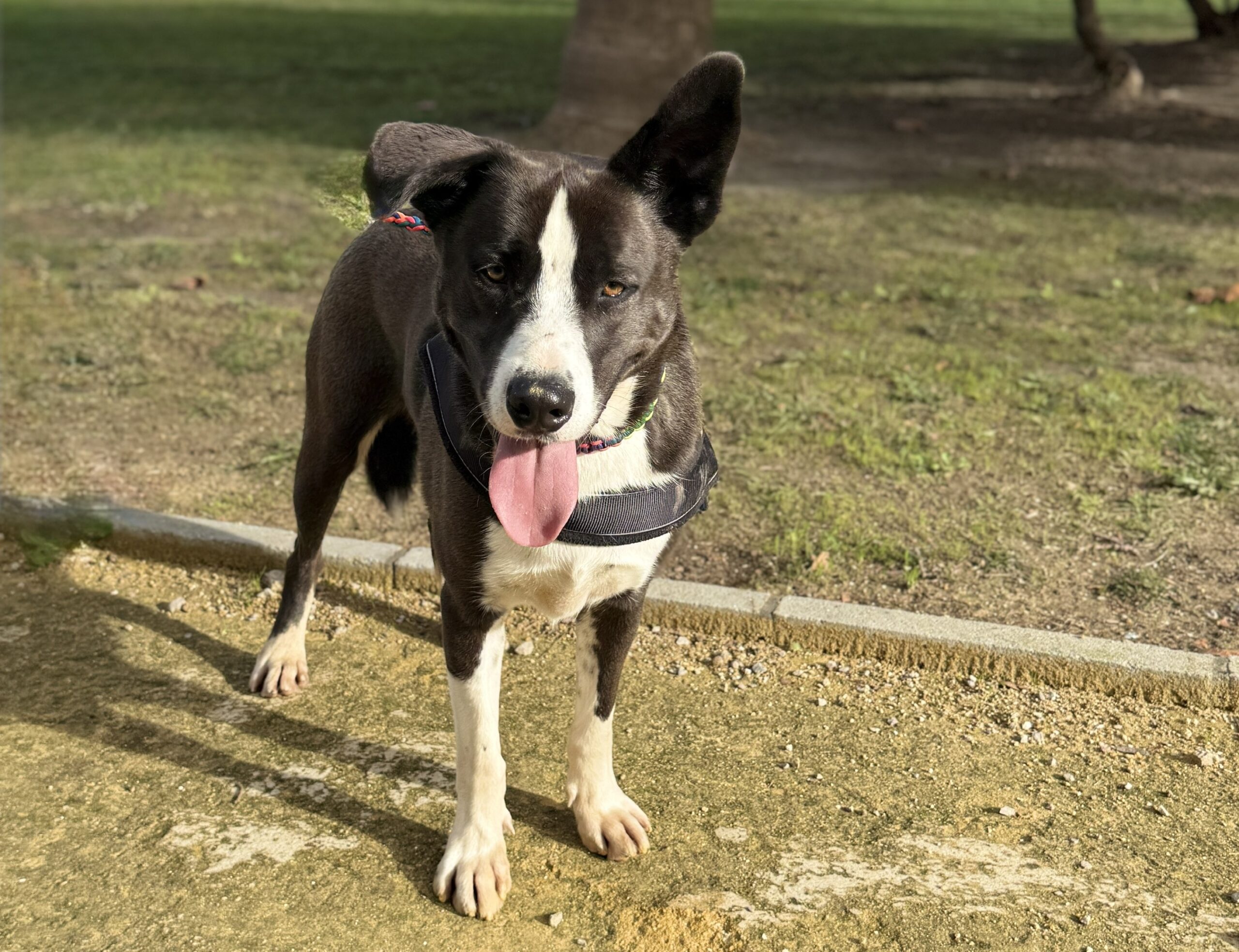 In March 2025, Kenzo had to leave the pound due to flooding and spent about a week in foster care with another dog from the pound. His foster family shared that he walks nicely on a leash and isn’t bothered by traffic. He is house-trained and does his business outside. While he can sometimes bark at other dogs, he is generally friendly.