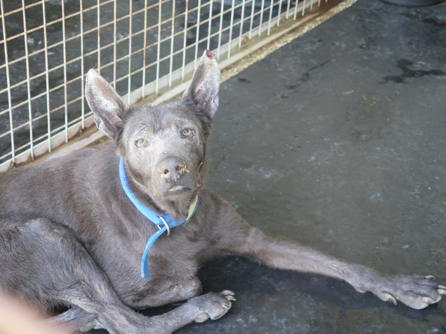 Orlando arrived at the pound in May 2025, around two years old, in a truly terrible state. It was clear he had been through a lot, but thanks to ongoing treatment and kind care, he’s now doing much better and continues to improve every day.